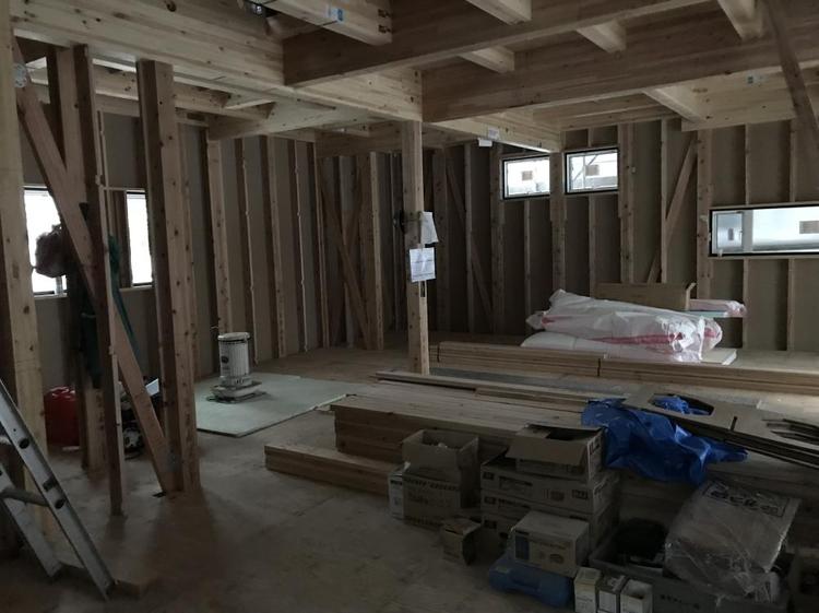 2階は断熱材充填がほぼ完了し、これから1階を進めていきます。