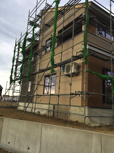 大和の家Ⅰは現在、外壁が施工完了しております!色はブラックとベージュを基調とした落ち着いたものとなっていて、周りの風景に溶け込む外観となっています。今はまだ足場がかかっており、雰囲気が伝わりにくい状態ですが、また外れた際にはブログにアップしたいと思います!