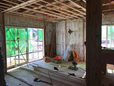 上越市 大和の家Ⅰは先月から建方が始まり現在は内部の木工事をしています。室内の壁断熱、壁下地、天井下地まで完了していて、これからは壁&天井の石こうボード張り、床フロア張りをしていきます。