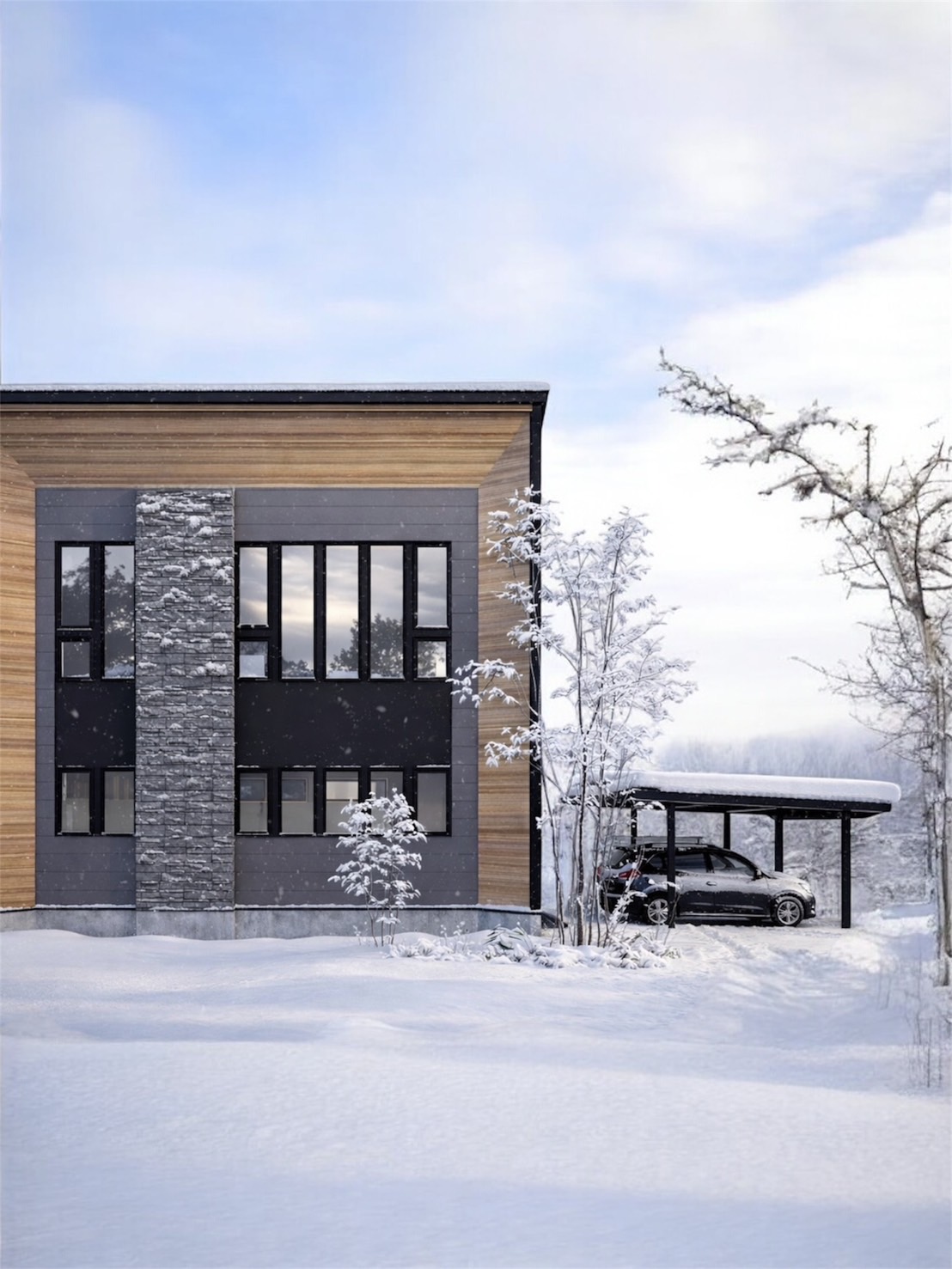 〇約40坪の高基礎×落雪屋根×2階リビング と、雪国仕様の別荘