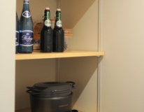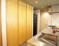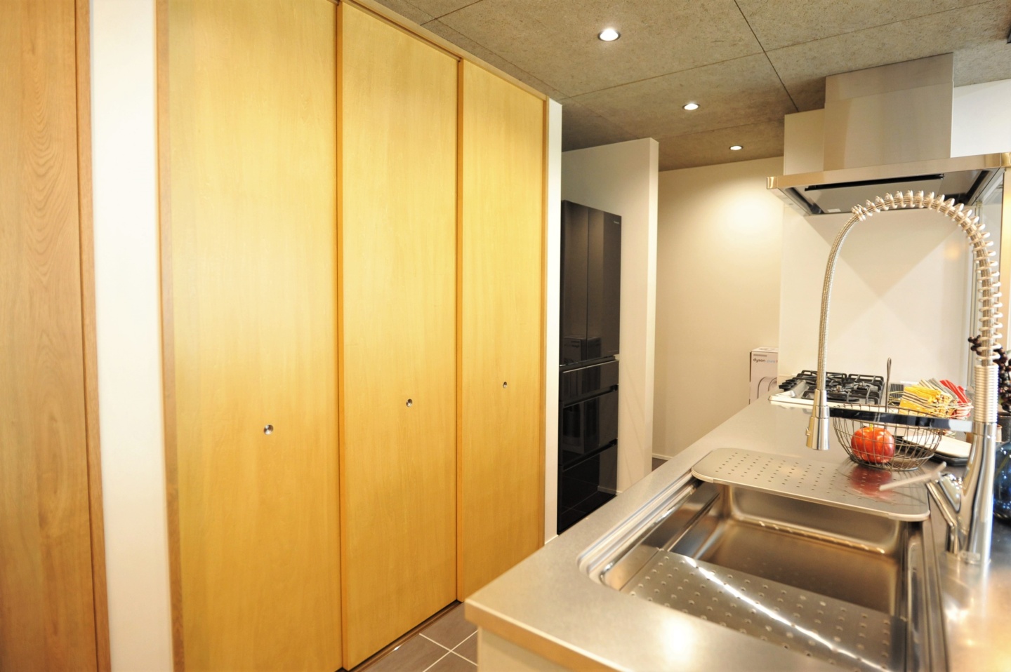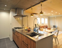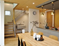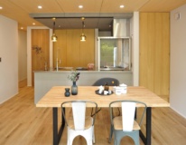 また、キッチンの天井には木毛セメント板を提案させていただきました。