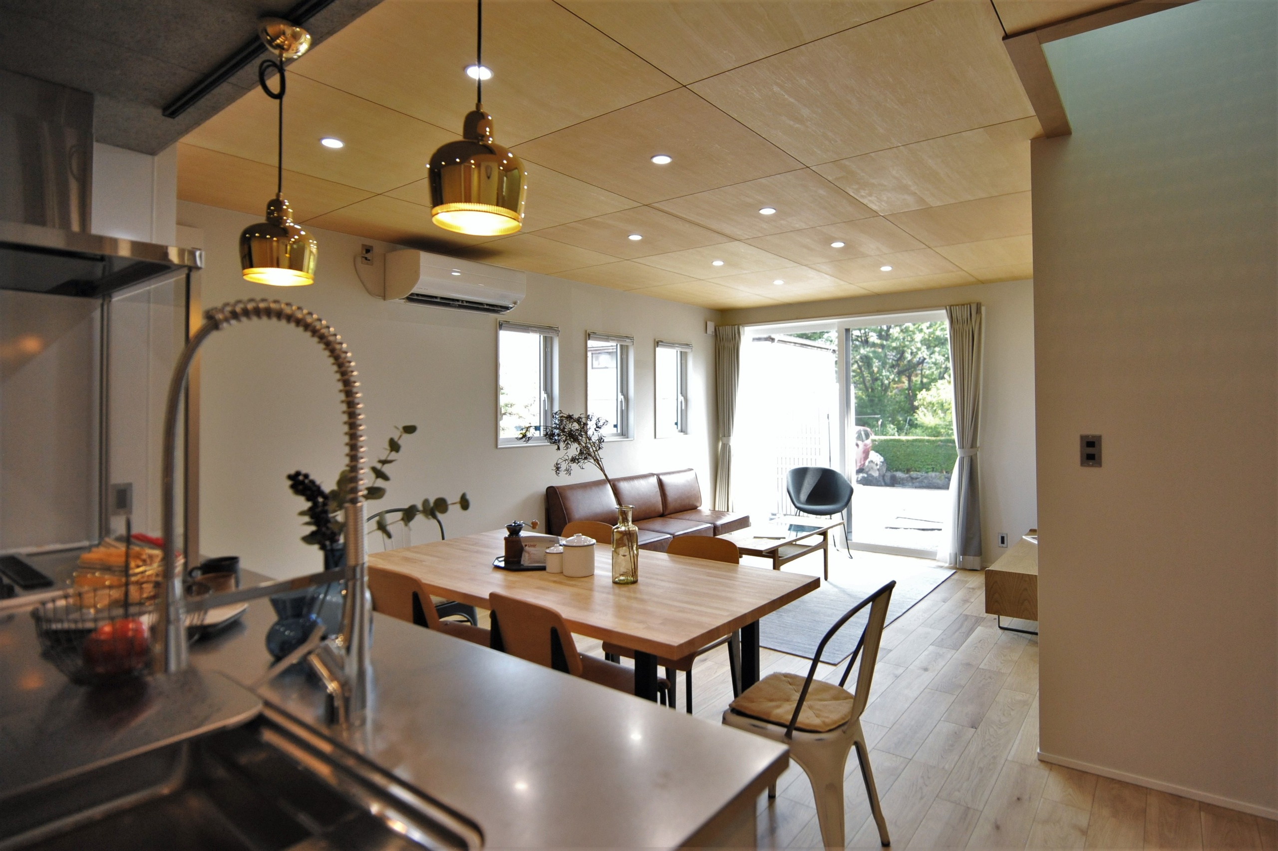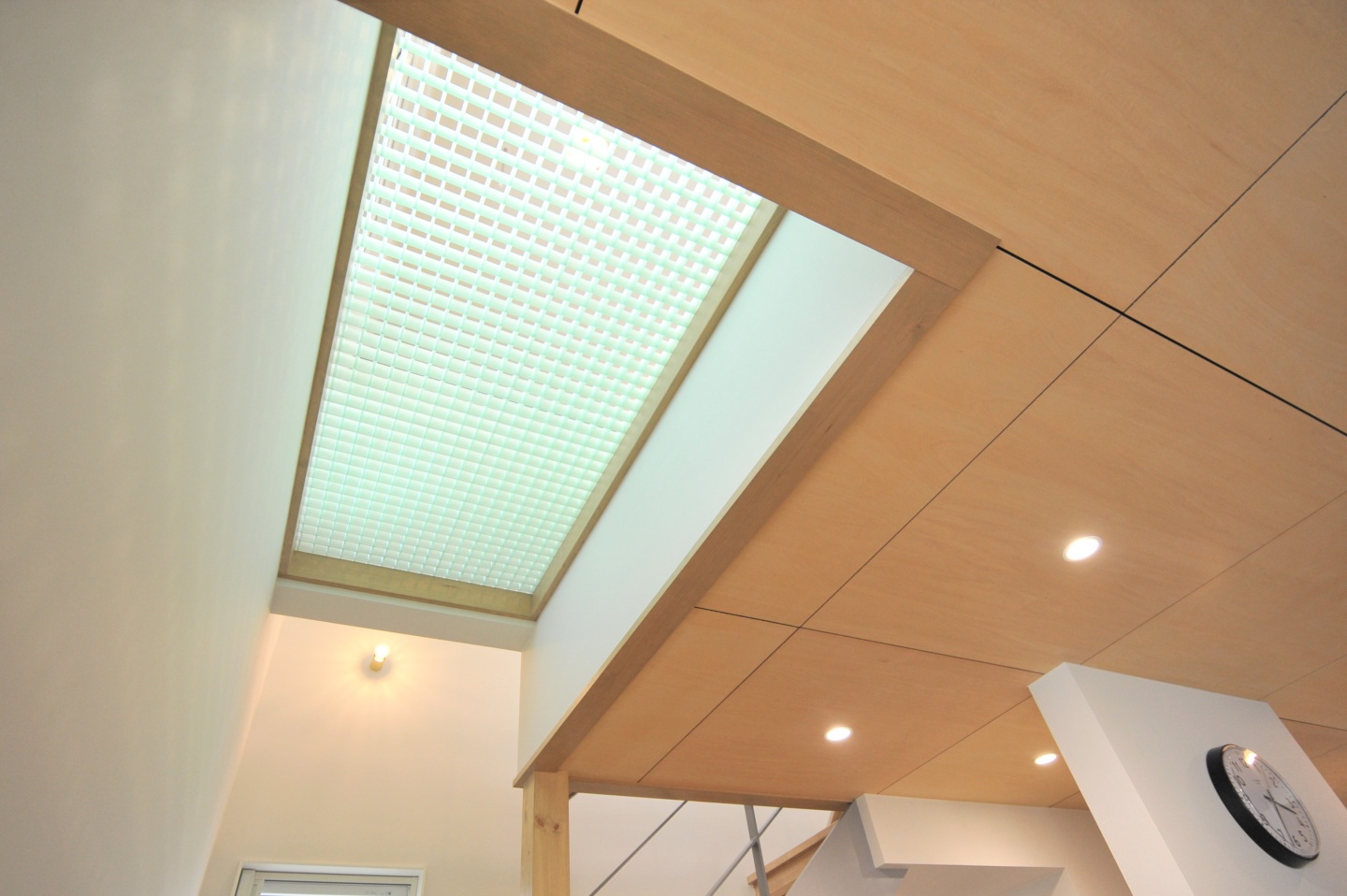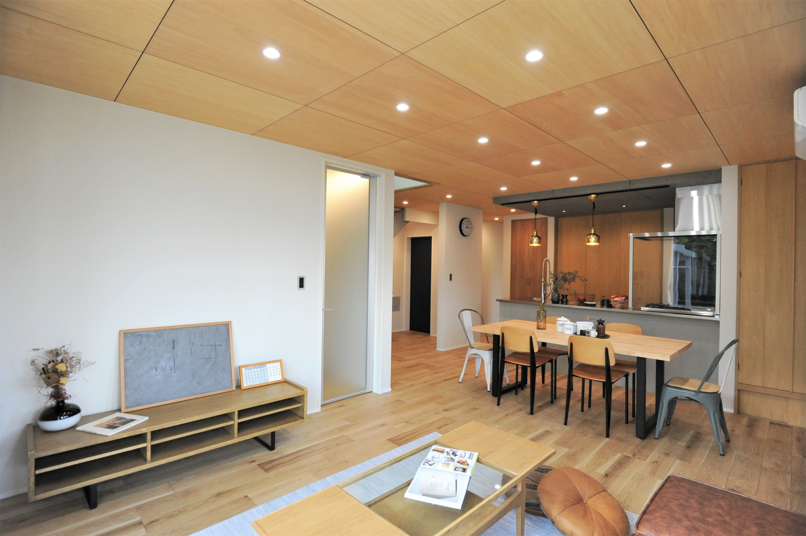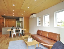 1FのLDK等メインスペースにはシナ合板を天井仕上げに採用してほしいということが、S・N様の最初からのご要望であり