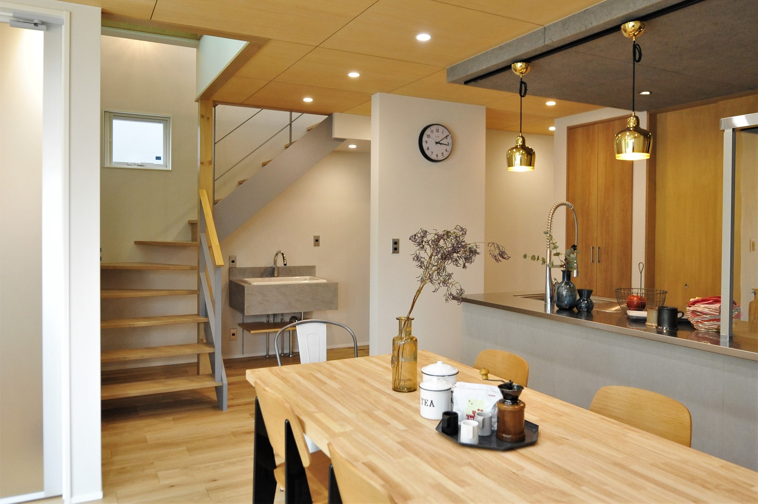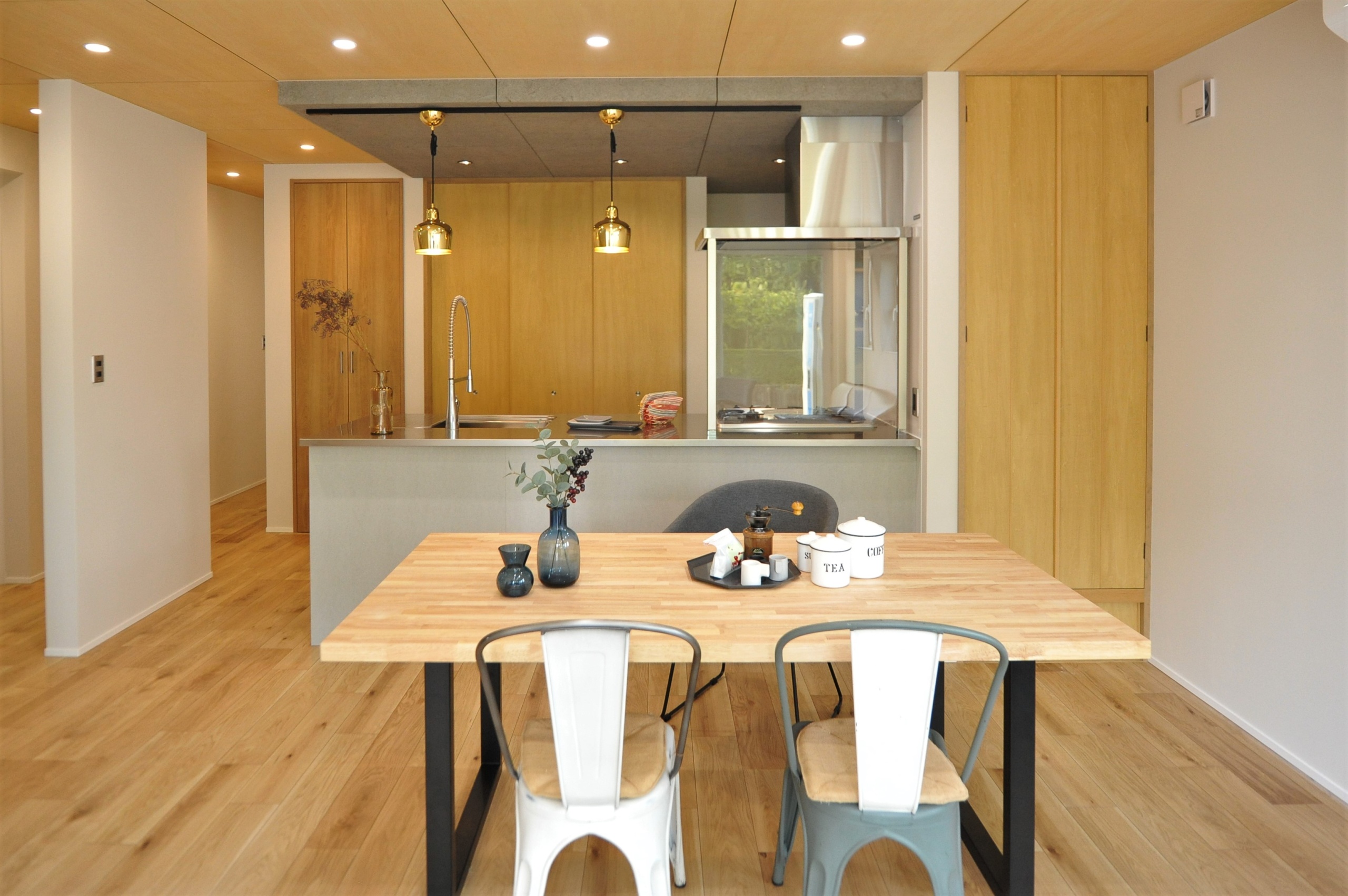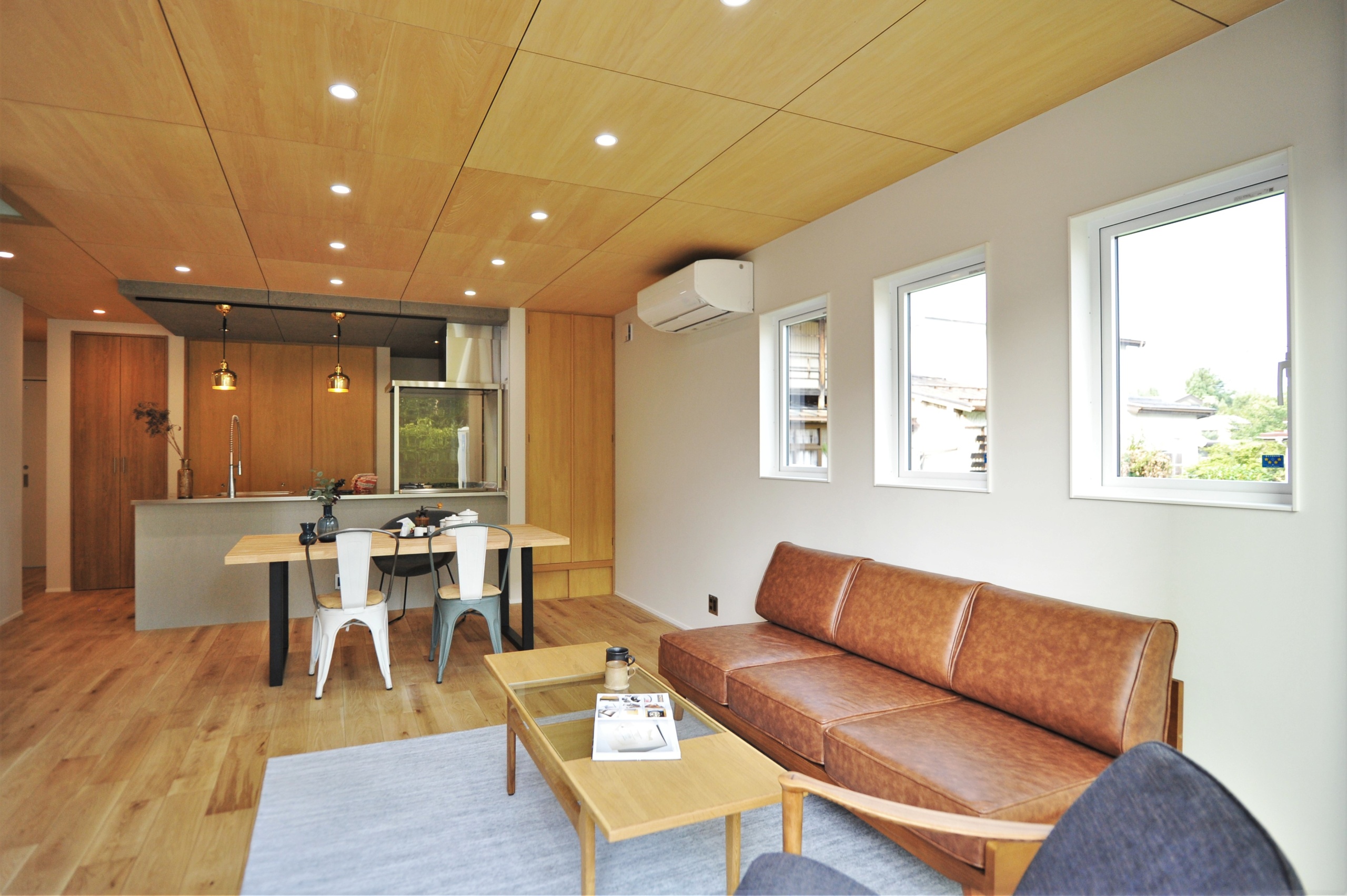 1FのLDK等メインスペースにはシナ合板を天井仕上げに採用してほしいということが、S・N様の最初からのご要望であり