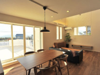 Y・U様より2世帯で快適に過ごせるよう、広々とした空間をご要望されました。 二世帯で住まわれるとのことなので、全体は白を基調とした仕切り壁が少ないスッキリとした空間になるよう工夫しました。 また生活動線もストレスが少ないよう工夫するようお願いされました。洗面脱衣所の隣にサンルームを設けたりと快適な生活動線になるよう努めました。