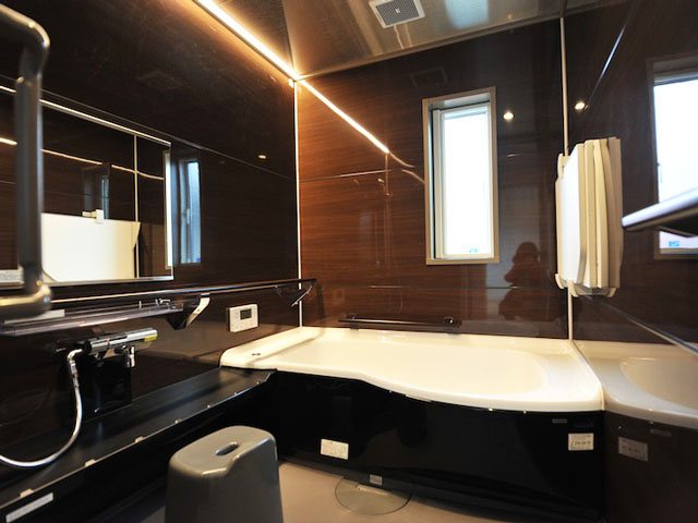 バスルームは黒を基調としたモダンな空間となっています。