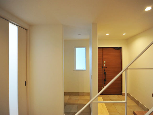 玄関の間に一つ壁を仕切ることで、家族と来客の玄関を分けています。