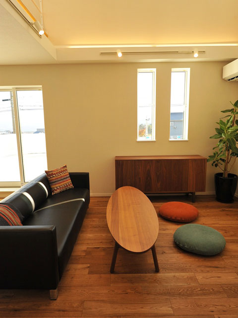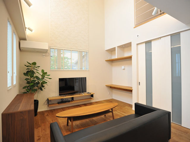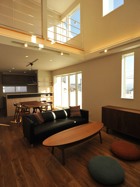 天井は吹き抜けになっており、採光が多く採れるリビングとなっています。