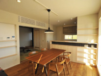 ダイニングキッチンはリビングと和室が隣接しており、とても広々とした空間となっています。