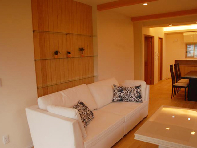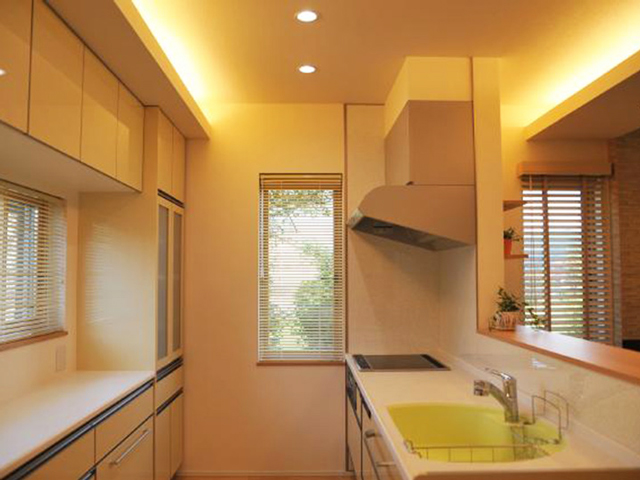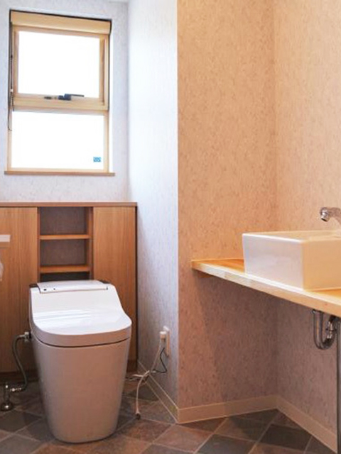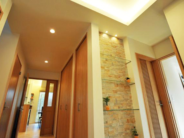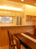 お年寄りのために階段を多く設けず、いただきもの等がキチンと片付くように収納スペースを多くし、ご夫婦、娘さん、息子さんそれぞれにお勤めしているため、ご自分のプライバシーが程よくキープできる間取りにいたしました。何度も打ち合わせをし、細かいところは、仕事が進むにつれこだわりの仕様部分も見えてきて、思う通りの素敵なお住まいになったと思います。